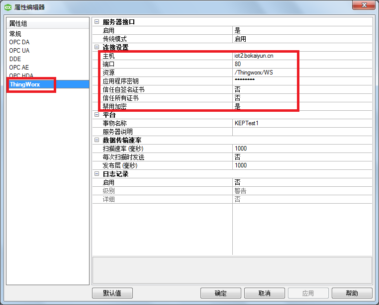 3、在KEPServerEX中做如下相关设置,联系021-3126 5138(上海泗博)免费获取“应用程序密钥”
