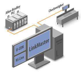 The most common scenario for LinkMaster is to link data between two (or more) OPC Servers. An example might be a customer using RSLinx for connectivity to Allen Bradley PLCs and Kepware's U-CON Protocol Server for connectivity to a checkweigher. In this example the customer wants to easily send scale data to the PLC.