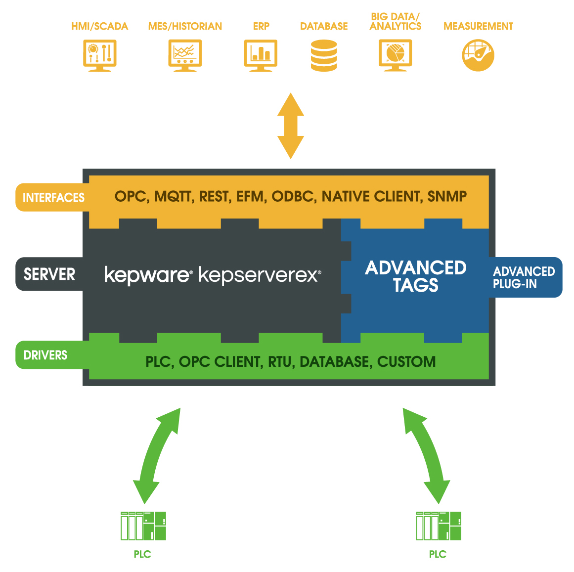 高级插件可扩展 KEPServerEX 连接平台的功能。通过将设备中的原始数据转换为其他形式,来提高数据实用性,并增强 KEPServerEX 的功能。