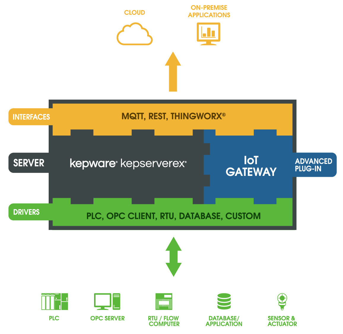 • 将 KEPServerEX 的实时数据流式传输到移动、大数据、企业资产管理、分析软件和 IoT 平台